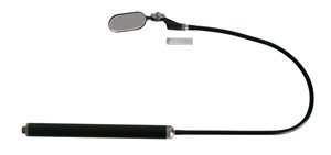 z oświetleniem, z elastycznym ramieniem i uchwytem z tworzywa, z trzema wymiennymi lusterkami 14 - 23 - 30 mm Ø, w komplecie z baterią